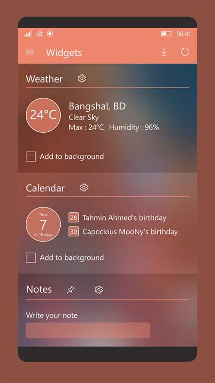 • Show widgets to lock screen (Notification, mood, personal info, calendar, weather, notes).